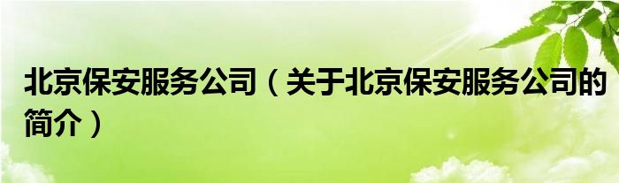 大家好,北京保安服務公司,關于北京保安服務公司的簡介很多人還不知道,現在讓我們一起來看看吧!