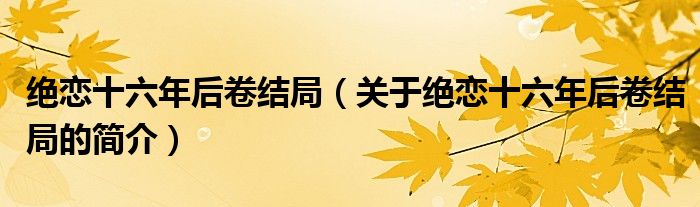 大家好,絕戀十六年后卷結局,關于絕戀十六年后卷結局的簡介很多人還不知道,現在讓我們一起來看看吧!