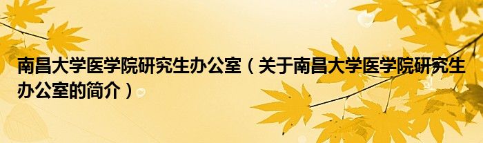本文關于南昌大學醫學院研究生辦公室的簡介就講解完畢,希望對大家有所幫助。