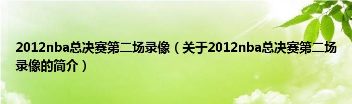 大家好,2012nba總決賽第二場錄像,關于2012nba總決賽第二場錄像的簡介很多人還不知道,現在讓我們一起來看看吧!