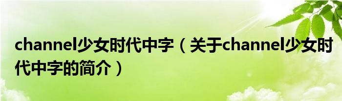本文關(guān)于channel少女時(shí)代中字的簡(jiǎn)介就講解完畢,希望對(duì)大家有所幫助。