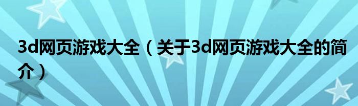 本文關于3d網頁游戲大全的簡介就講解完畢,希望對大家有所幫助。