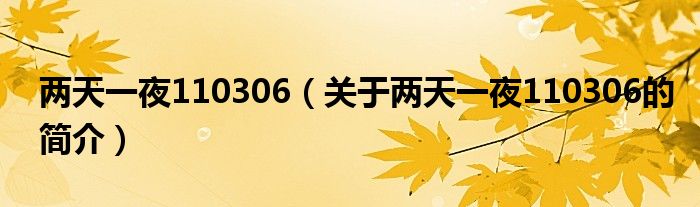 本文關于兩天一夜110306的簡介就講解完畢,希望對大家有所幫助。