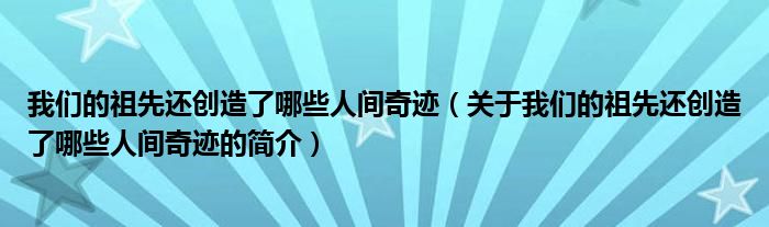 本文關(guān)于我們的祖先還創(chuàng)造了哪些人間奇跡的簡(jiǎn)介就講解完畢,希望對(duì)大家有所幫助。