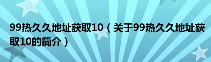 本文關于99熱久久地址獲取10的簡介就講解完畢,希望對大家有所幫助。