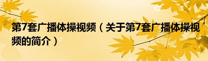 本文關于第7套廣播體操視頻的簡介就講解完畢,希望對大家有所幫助。