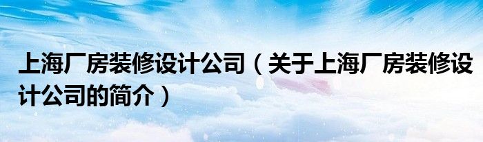 本文關(guān)于上海廠房裝修設(shè)計公司的簡介就講解完畢,希望對大家有所幫助。