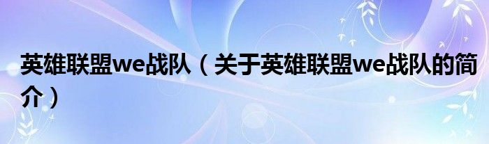 本文關于英雄聯(lián)盟we戰(zhàn)隊的簡介就講解完畢,希望對大家有所幫助。