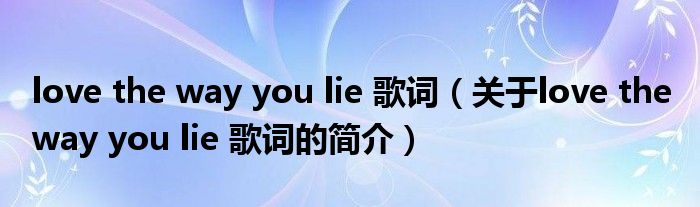 本文關(guān)于love the way you lie 歌詞的簡(jiǎn)介就講解完畢,希望對(duì)大家有所幫助。