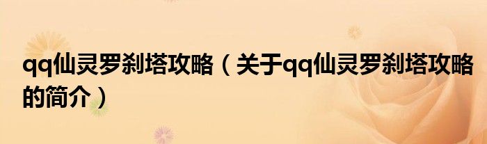 本文關(guān)于qq仙靈羅剎塔攻略的簡介就講解完畢,希望對大家有所幫助。