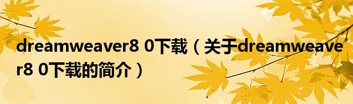 本文關于dreamweaver8 0下載的簡介就講解完畢,希望對大家有所幫助。