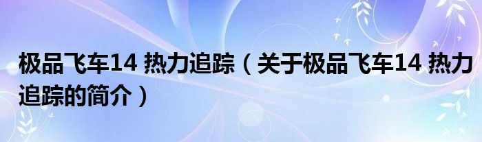 本文關(guān)于極品飛車14 熱力追蹤的簡介就講解完畢,希望對(duì)大家有所幫助。