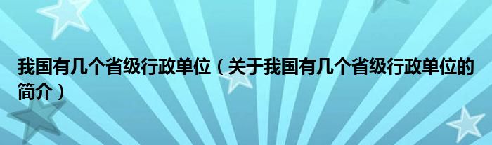 本文關于我國有幾個省級行政單位的簡介就講解完畢,希望對大家有所幫助。