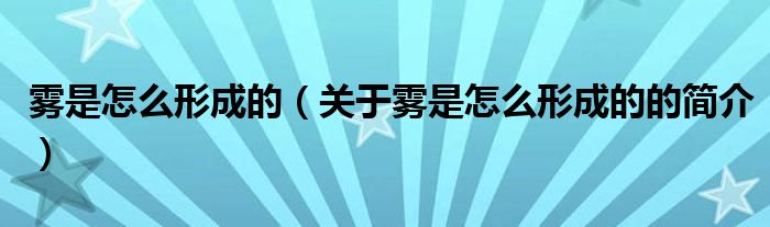 本文關于霧是怎么形成的的簡介就講解完畢,希望對大家有所幫助。