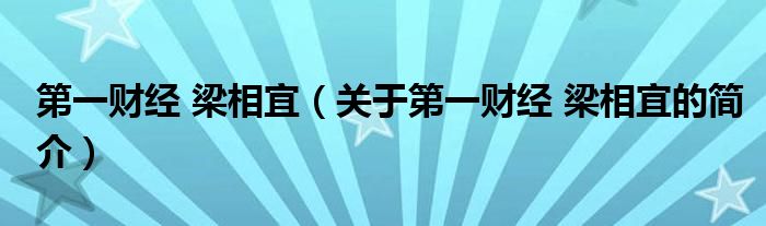 大家好,第一財經 梁相宜,關于第一財經 梁相宜的簡介很多人還不知道,現在讓我們一起來看看吧!