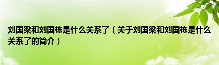 大家好,劉國梁和劉國棟是什么關系了,關于劉國梁和劉國棟是什么關系了的簡介很多人還不知道,現在讓我們一起來看看吧!