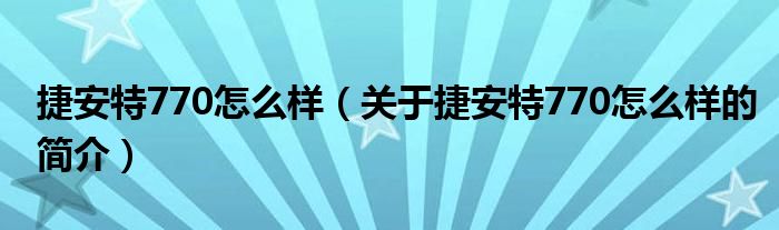 本文關(guān)于捷安特770怎么樣的簡介就講解完畢,希望對大家有所幫助。