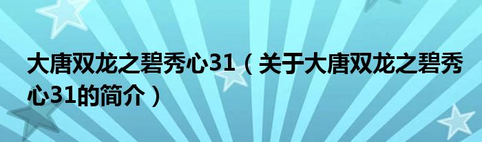 本文關于大唐雙龍之碧秀心31的簡介就講解完畢,希望對大家有所幫助。