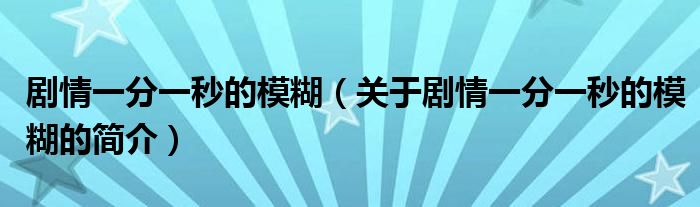 本文關(guān)于劇情一分一秒的模糊的簡介就講解完畢,希望對大家有所幫助。