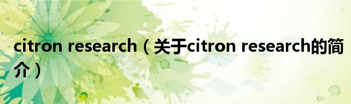 大家好,citron research,關于citron research的簡介很多人還不知道,現在讓我們一起來看看吧!