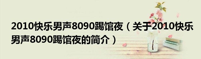大家好,2010快樂男聲8090踢館夜,關于2010快樂男聲8090踢館夜的簡介很多人還不知道,現在讓我們一起來看看吧!