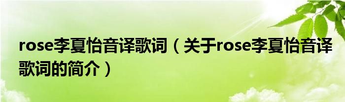 本文關于rose李夏怡音譯歌詞的簡介就講解完畢,希望對大家有所幫助。