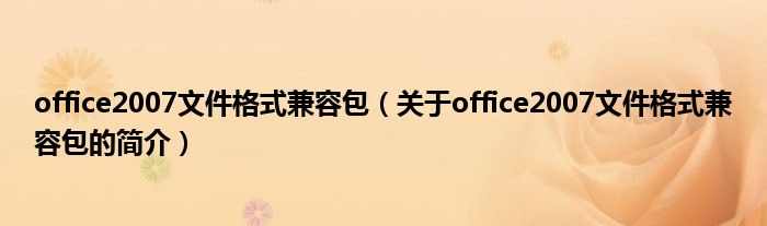 本文關于office2007文件格式兼容包的簡介就講解完畢,希望對大家有所幫助。