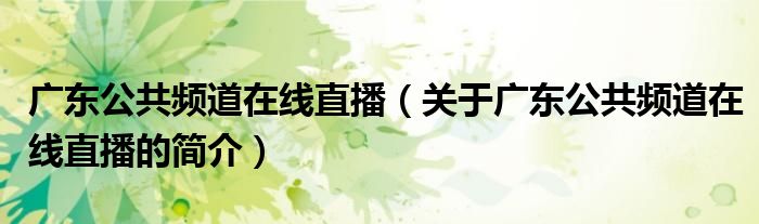 本文關于廣東公共頻道在線直播的簡介就講解完畢,希望對大家有所幫助。