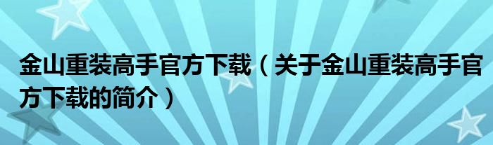 本文關(guān)于金山重裝高手官方下載的簡(jiǎn)介就講解完畢,希望對(duì)大家有所幫助。