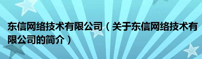本文關于東信網絡技術有限公司的簡介就講解完畢,希望對大家有所幫助。
