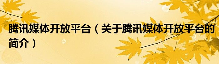 本文關于騰訊媒體開放平臺的簡介就講解完畢,希望對大家有所幫助。