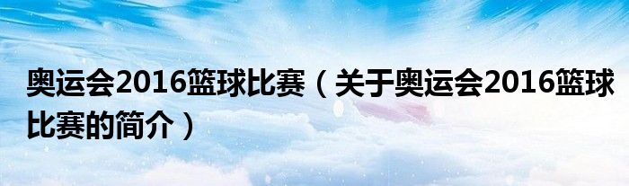本文關(guān)于奧運(yùn)會(huì)2016籃球比賽的簡(jiǎn)介就講解完畢,希望對(duì)大家有所幫助。