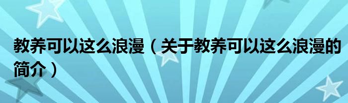 本文關于教養(yǎng)可以這么浪漫的簡介就講解完畢,希望對大家有所幫助。