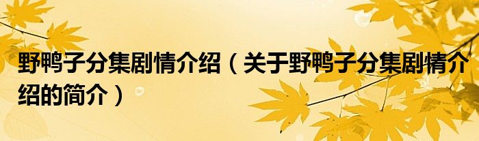 本文關于野鴨子分集劇情介紹的簡介就講解完畢,希望對大家有所幫助。