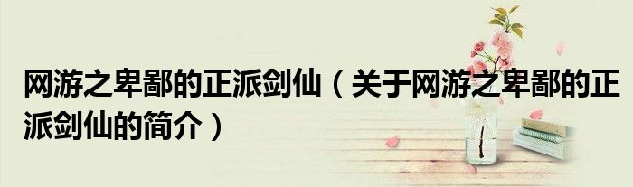 大家好,網游之卑鄙的正派劍仙,關于網游之卑鄙的正派劍仙的簡介很多人還不知道,現在讓我們一起來看看吧!