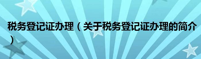 本文關于稅務登記證辦理的簡介就講解完畢,希望對大家有所幫助。