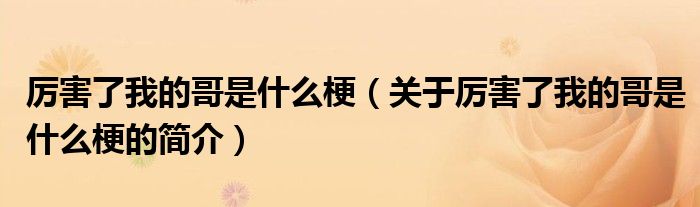 本文關于厲害了我的哥是什么梗的簡介就講解完畢,希望對大家有所幫助。