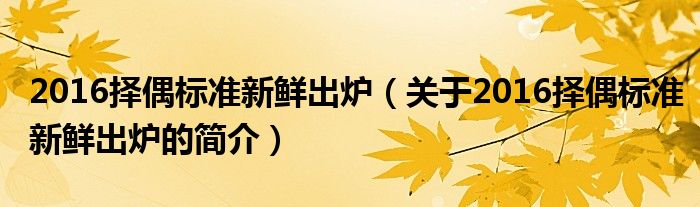 本文關于2016擇偶標準新鮮出爐的簡介就講解完畢,希望對大家有所幫助。