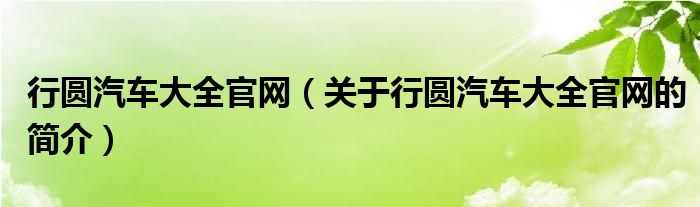 本文關于行圓汽車大全官網的簡介就講解完畢,希望對大家有所幫助。