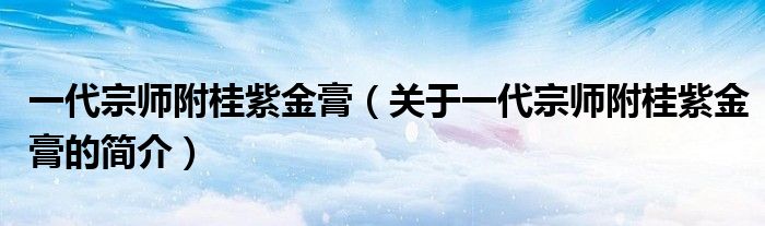 本文關(guān)于一代宗師附桂紫金膏的簡介就講解完畢,希望對大家有所幫助。