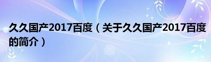 本文關(guān)于久久國產(chǎn)2017百度的簡介就講解完畢,希望對大家有所幫助。