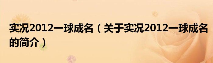 本文關于實況2012一球成名的簡介就講解完畢,希望對大家有所幫助。