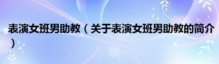 大家好,表演女班男助教,關于表演女班男助教的簡介很多人還不知道,現在讓我們一起來看看吧!