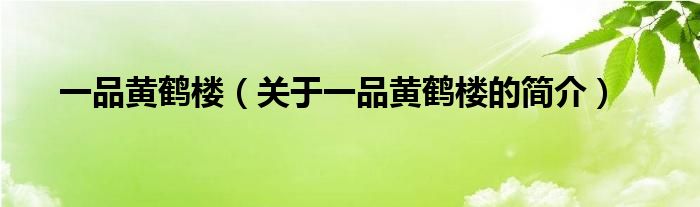 本文關于一品黃鶴樓的簡介就講解完畢,希望對大家有所幫助。