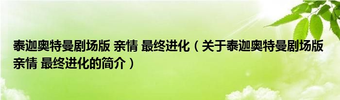 本文關于泰迦奧特曼劇場版 親情 最終進化的簡介就講解完畢,希望對大家有所幫助。