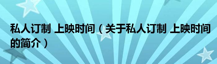 本文關(guān)于私人訂制 上映時間的簡介就講解完畢,希望對大家有所幫助。