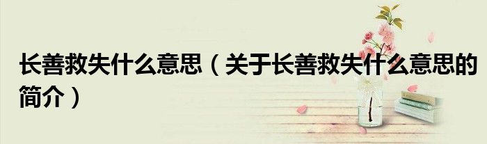 本文關于長善救失什么意思的簡介就講解完畢,希望對大家有所幫助。
