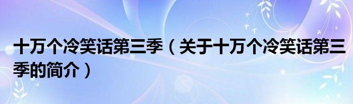 本文關于十萬個冷笑話第三季的簡介就講解完畢,希望對大家有所幫助。