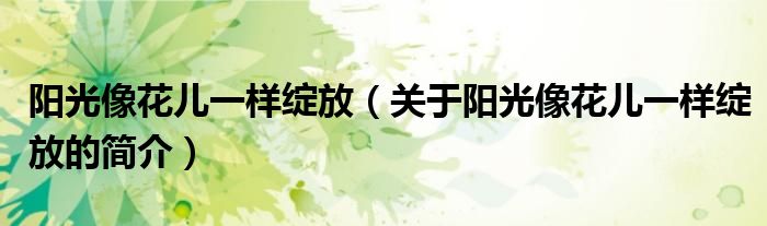 大家好,陽光像花兒一樣綻放,關(guān)于陽光像花兒一樣綻放的簡介很多人還不知道,現(xiàn)在讓我們一起來看看吧!