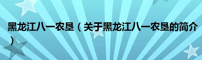大家好,黑龍江八一農墾,關于黑龍江八一農墾的簡介很多人還不知道,現在讓我們一起來看看吧!